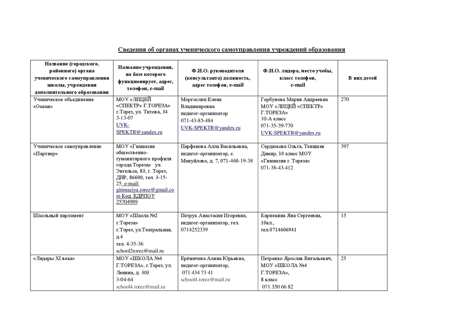 Взаимодействие с органами ученического самоуправления учебных заведений города