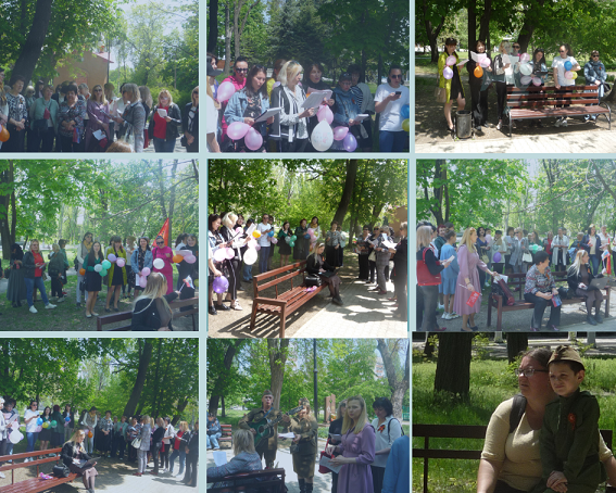 9 мая педагоги МОДО «ДДЮТ «Юность» и МОУ «Гимназия общественно-гуманитарного профиля» приняли участие в акции «Поющий двор».