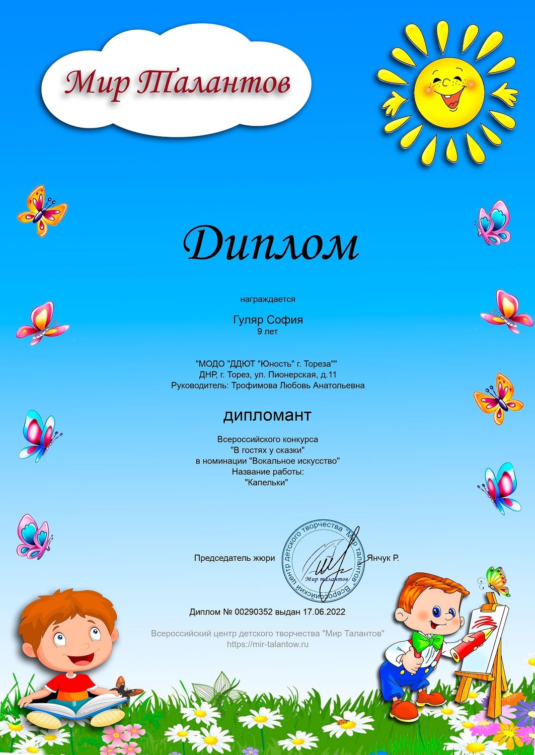 Диденко Назар, обучающийся образцового художественного коллектива «Школа красоты» (педагог Москалева Е.В.), принял участие во Всероссийском детском творческом конкурсе «Пожарная безопасность» (всероссийское СМИ «Высшая школа делового администрирования»).