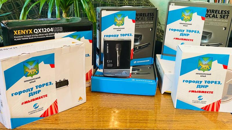 В рамках взаимодействия регионов Российской Федерации с городами ДНР 18 июля 2022 года глава администрации города Тореза Дмитрий Лысенко совместно с представителями Приморского края передали в дар МОДО ДДЮТ "Юность г. Тореза" мультимедийную технику: локальную радиосистему с ручным передатчиком, аналоговый микшер, локальный проводной микрофон, проектор мультимедийный. Данная техника позволит улучшить качество проведения мероприятий как на базе учреждения, так и общегородских праздников.