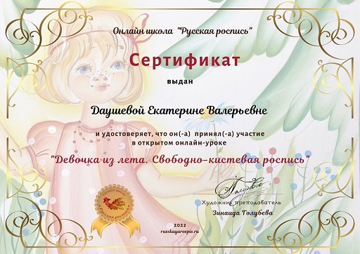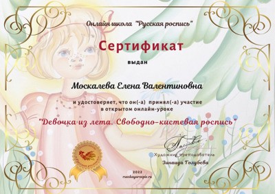 Педагоги МОДО «ДДЮТ «Юность» Москалева Е.В. и Даушева Е.В. приняли участие в открытом онлайн-уроке «Девочка из лета. Свободно-кистевая роспись» в онлайн-школе «Русская роспись».