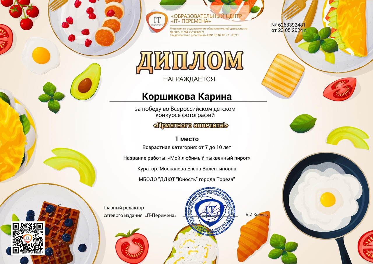 Обучающаяся образцового художественного коллектива «Школа красоты» (педагог Москалева Е.В.) Иким Виктория с 16.05 по 21.05 2024 приняла участие во Всероссийском детском конкурсе поделок из ниток «Волшебные ниточки» (ВШДА, г. Екатеринбург).