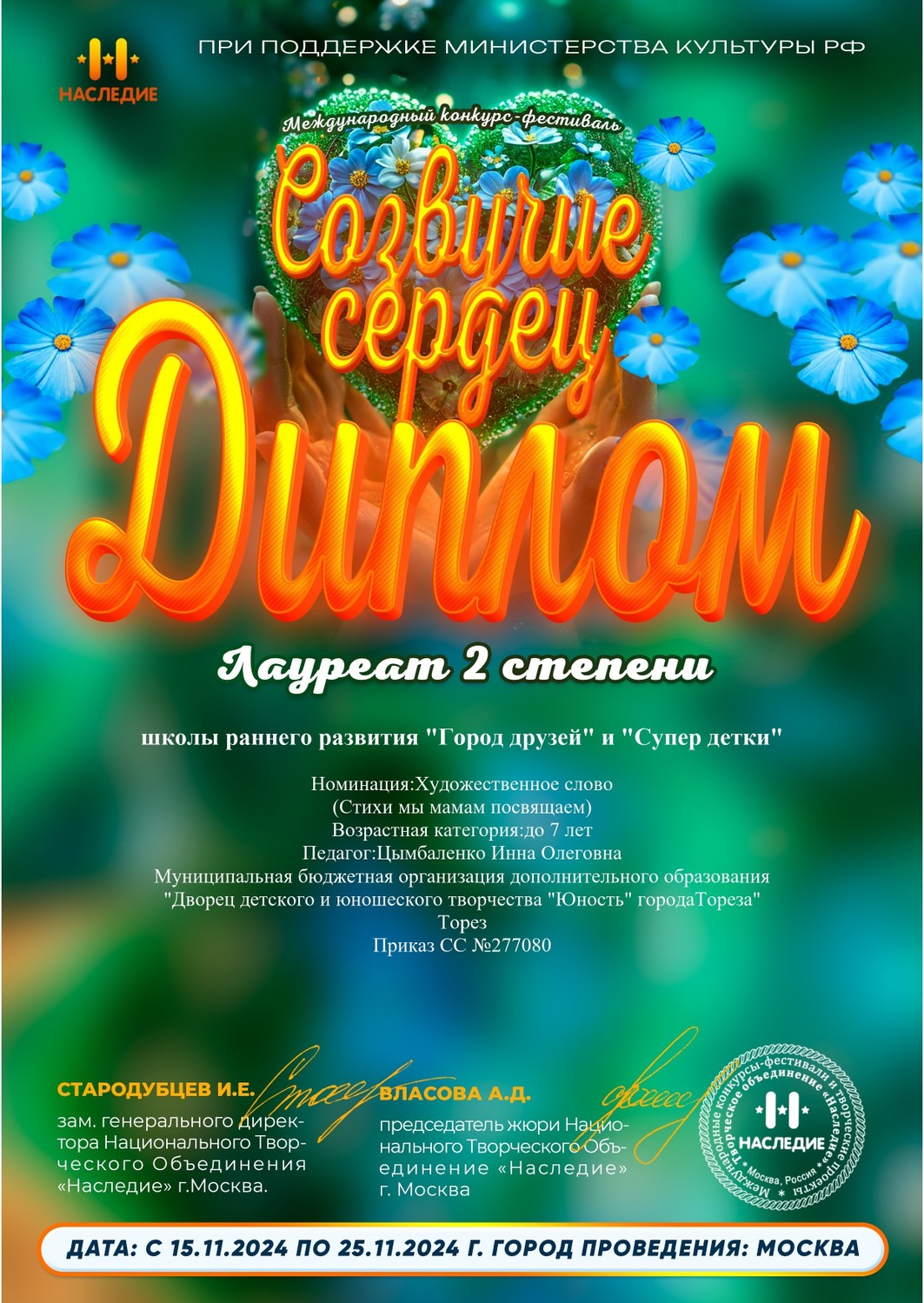 С 29.11.24 по 01.12.24 старшая группа Народного ансамбля современного танца "Баттерфляй" (педагог Степанова Ю.Э.) приняла участие в Международном фестивале-конкурсе хореографического искусства "Танцевальная Олимпиада ОРФЕСТ" (г. Сочи).