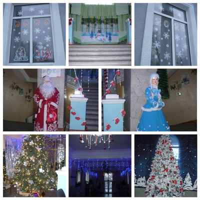 Сотрудники Дворца творчества украсили учреждение к новогодним мероприятиям. Для детей и родителей подготовлено несколько фото-зон, украшены окна, вестибюль, фойе, колонный и зрительный залы. Авторы проекта – Даушева Е.В., Привалова Т.А. и Москалева Е.В.