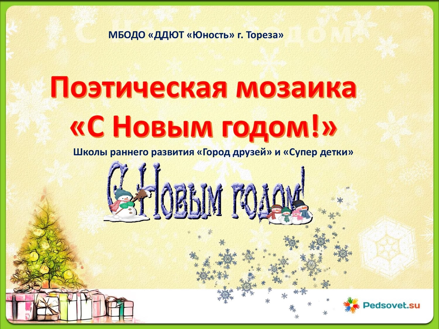 Поэтическая мозаика " С Новым годом!"от школ раннего развития "Город друзей" и "Супер детки" https://rutube.ru/video/6d5591ede53d0e1126d7c0476083d0b8/