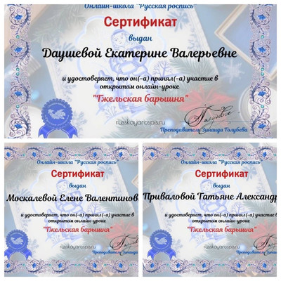 Педагоги Дворца творчества Даушева Е.В., Москалева Е.В. и Привалова Т.А. приняли участие в открытом онлайн-уроке «Гжельская барышня» от онлайн-школы «Русская роспись».