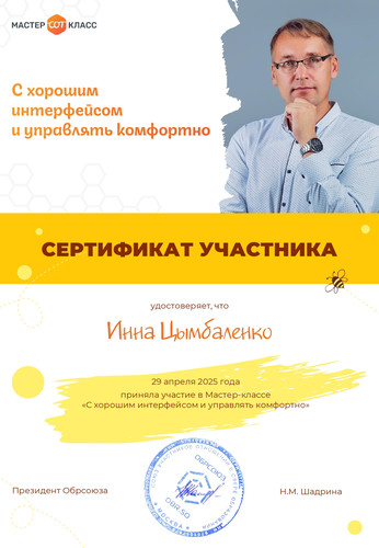 Педагог Дворца творчества Цымбаленко И.О. стала участником мастер-класса «С хорошим интерфейсом и управлять комфортно» (Обрсоюз).