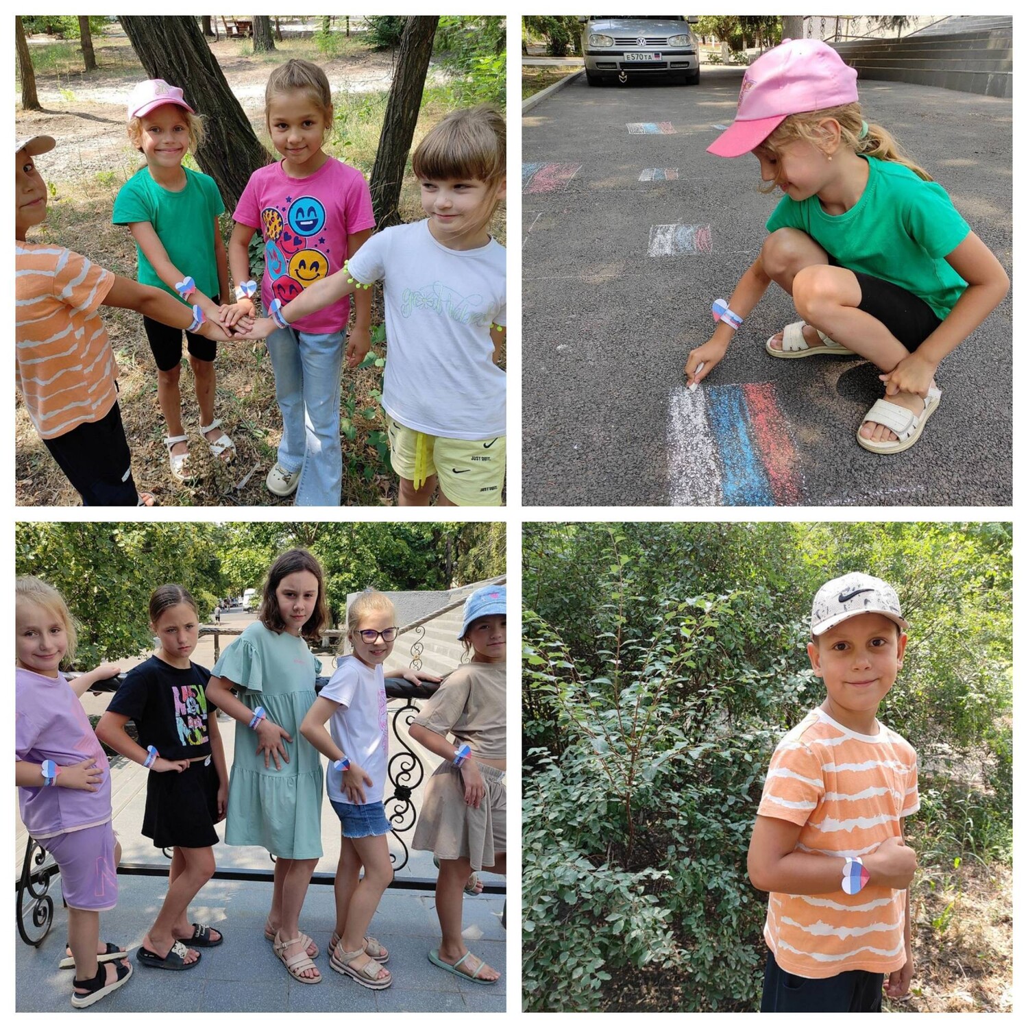 Центральная городская библиотека для детей провела патриотическую акцию: ребятам и взрослым нашего города была рассказана история флага Российской Федерации, дети отгадывали загадки, делились своими знаниями о празднике, на асфальте рисовали красочные флаги, отвечали на вопросы викторины, были награждены тематическими браслетами «триколор».