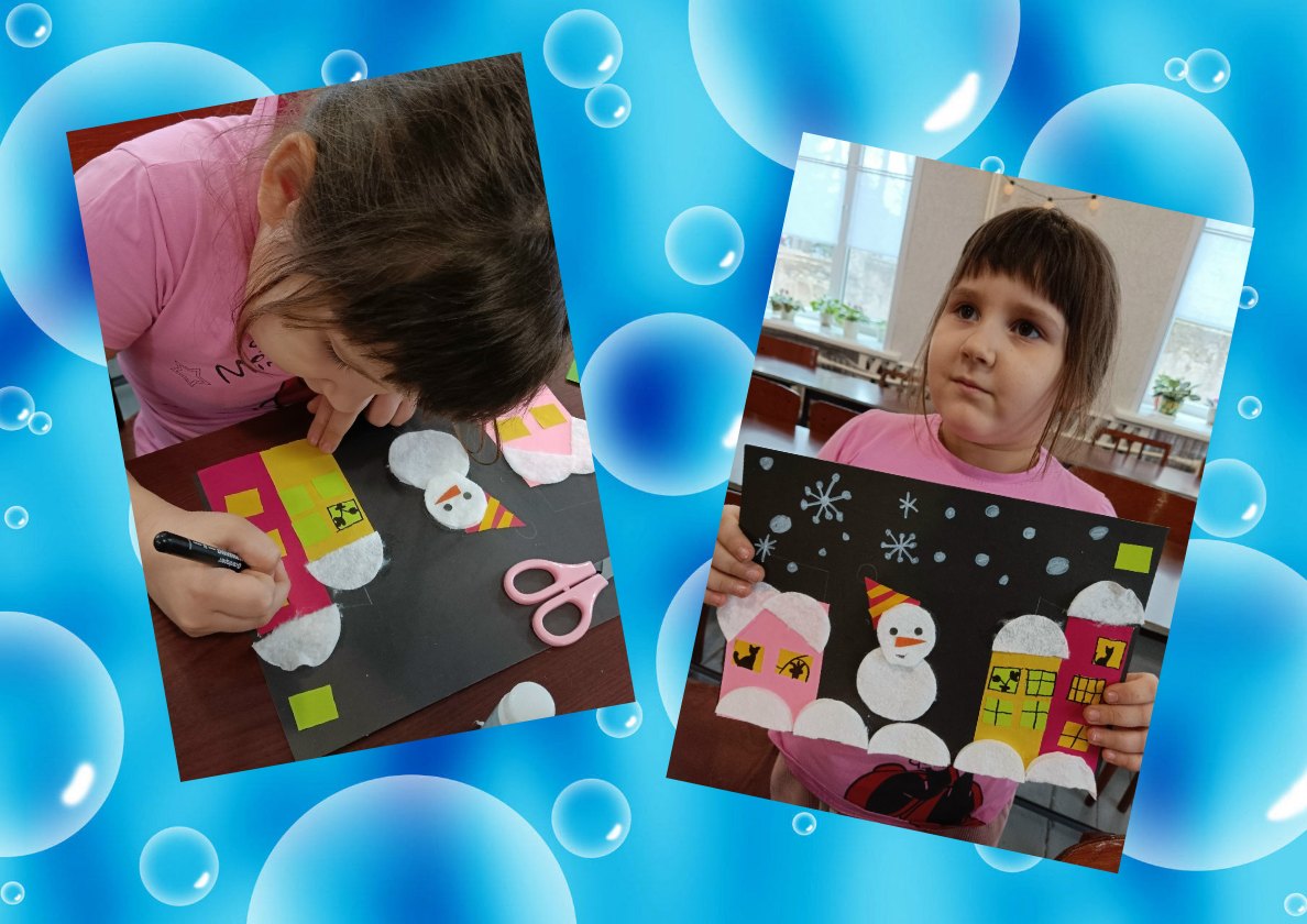 Под руководством опытного педагога обучающиеся делали аппликацию из ватных дисков: