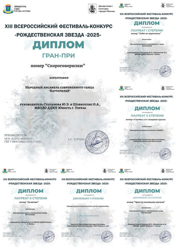 Получены дипломы за участие в XIII Всероссийском фестивале-конкурсе дебютного творчества «Рождественская звезда 2025» (г. Москва).