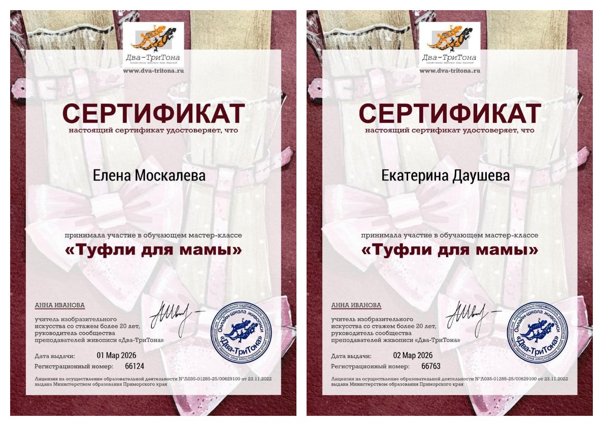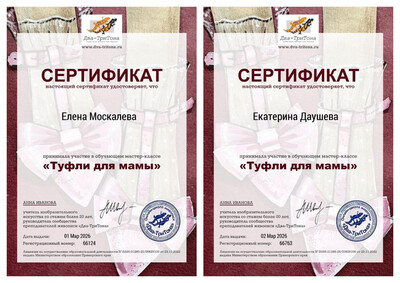Педагоги Дворца творчества Москалева Е.В. и Даушева Е.В. приняли участие в обучающем мастер-классе «Туфли для мамы» и обучающем вебинаре по авторской программе Елены Мурадовой.