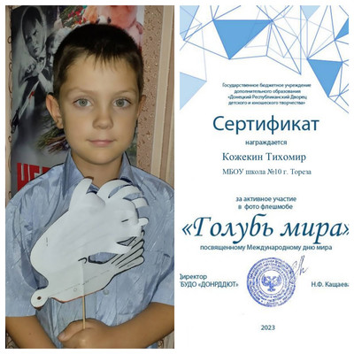 Обучающийся МБОДО «ДДЮТ «Юность» (ТО «Улыбка» и «Школа красоты») Кожекин Тихомир принял участие в виртуальном фото-флешмобе «Голубь мира», приуроченному к Международному Дню мира. Для участи в акции надо было создать самый известный символ мира – бумажного голубя в технике оригами по опубликованному мастер-классу Республиканского ДДЮТ, а после запустить в виртуальный полёт свои работы на страницах социальной сети «ВКонтакте» по хештегу #ГолубьМира_ДОНРДДЮТ с пожеланиями мира и добра, дружбы и взаимопонимания. Все участники были награждены сертификатами. | |