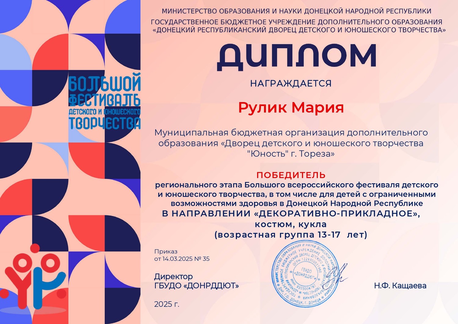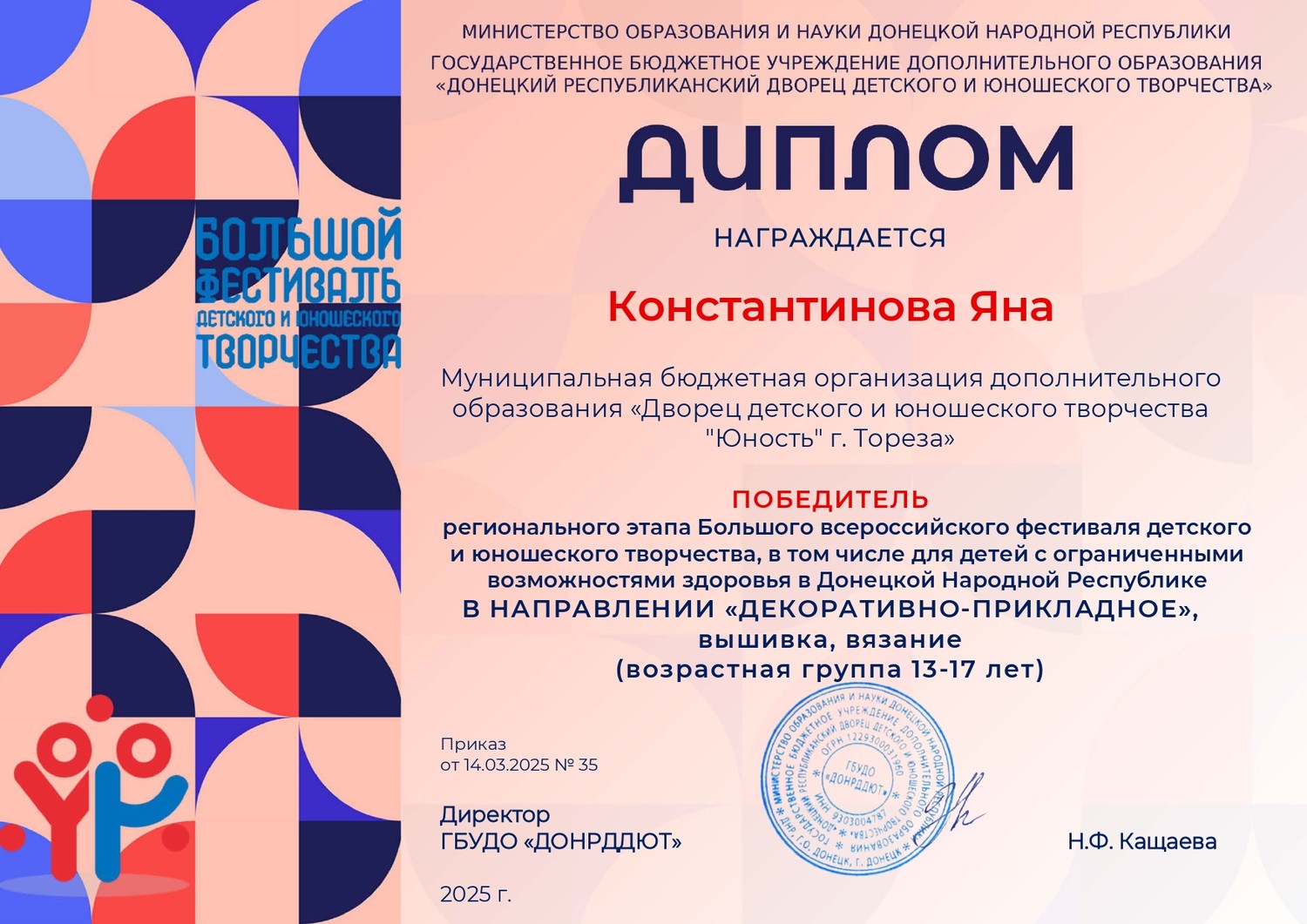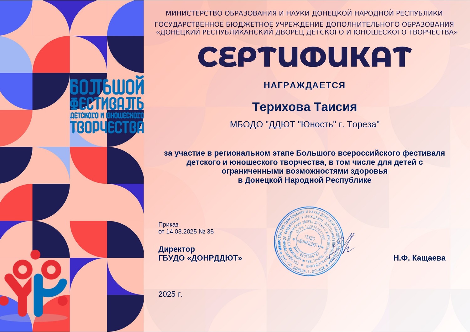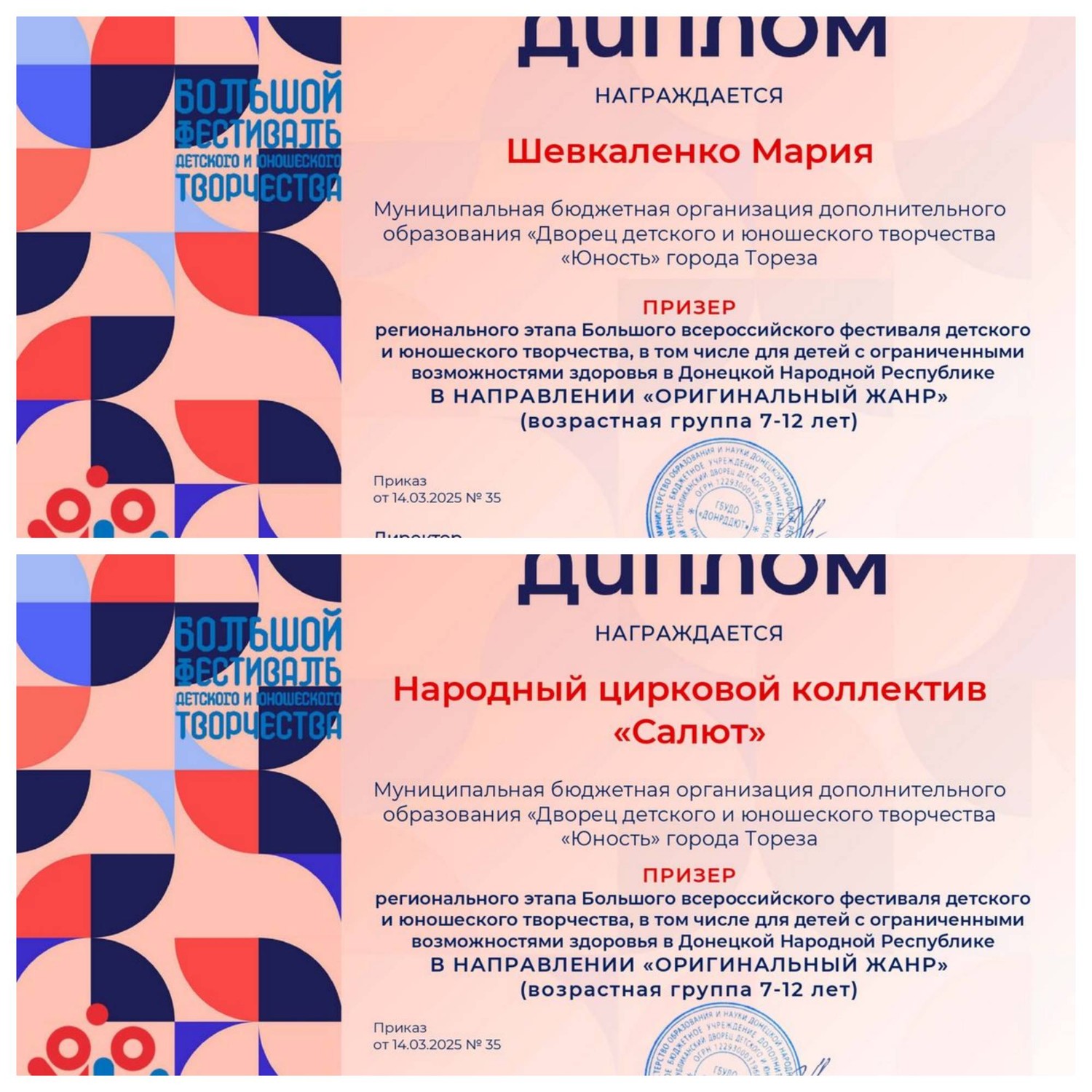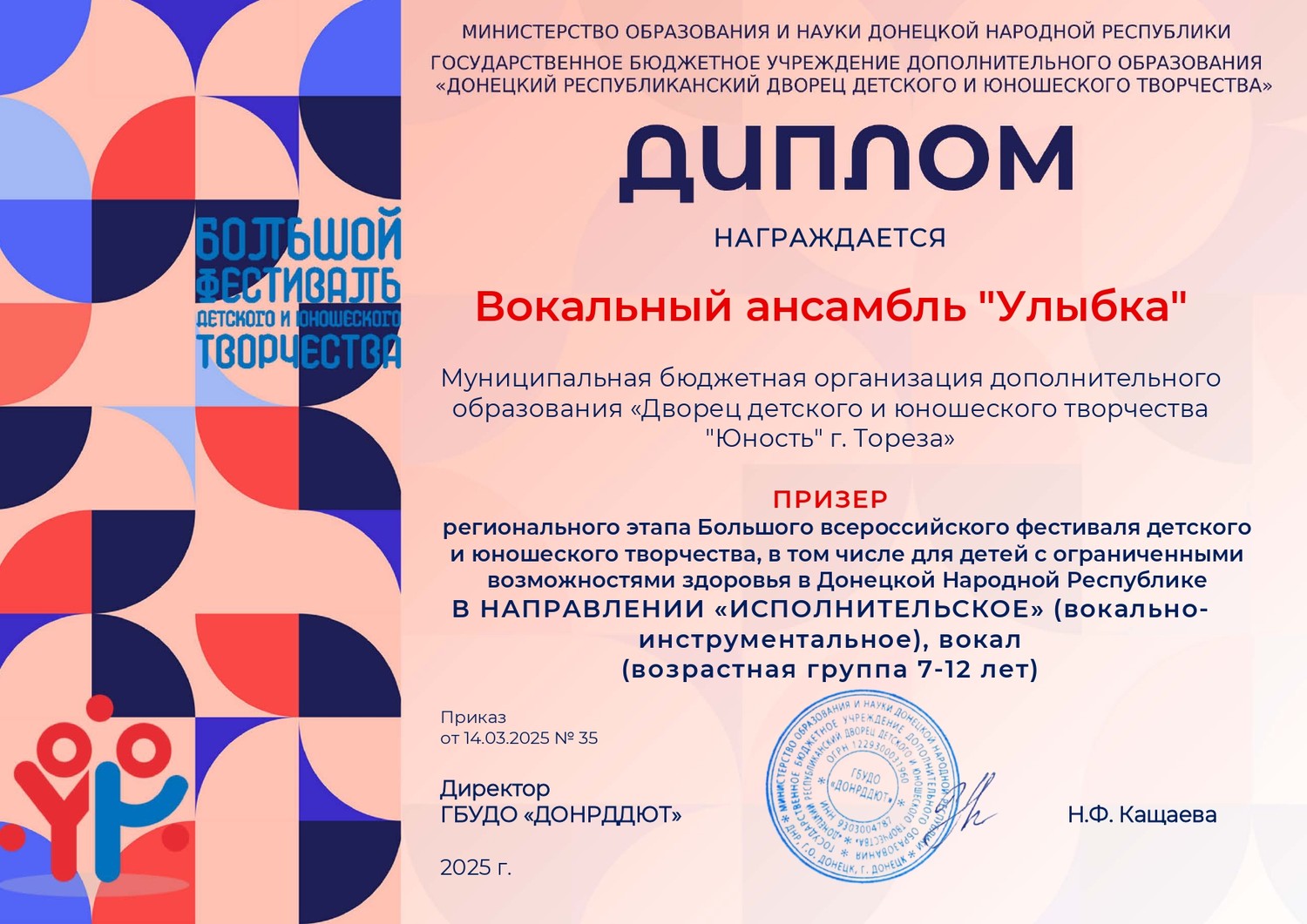 Наши итоги: - 4 победителя, 14 призёров и 5 сертификатов участников: Победители – Ярошенко Дарья и Зайцева Маргарита (народный ансамбль эстрадной песни «Тоника»), Рулик Мария (народный художественный коллектив «Рукодельница»), Константинова Яна (народный художественный коллектив "Волшебная ниточка") Призёры – Шевкаленко Мария и номер «Скакалки» (народный цирковой коллектив «Салют»); Овчинникова Анастасия и Коршикова Карина (ТО «Школа красоты»); «Дорогой добра» (вокальный ансамбль «Улыбка»); Серёгина Ульяна (ТО «Живопись и графика»); Тимченко Маргарита, Овчинникова Анастасия (ТО «Волшебная ниточка»); Иващенко Екатерина, Овчинникова Анастасия, Гараева Анастасия, Фирсова Валерия и Козлова Татьяна (ТО «Рукодельница»); «Журавли» (народный ансамбль современного танца «Баттерфляй»). Сертификаты участников: Филина София и Гавриленко Дарья (ТО «Салют); Бутвина Алина и Терихова Таисия(ТО «Живопись и графика». Народный ансамбль эстрадной песни "Тоника" | |
