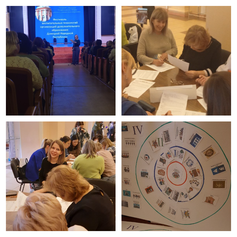 4 декабря в ГБУДО «Донецкий Республиканский Дворец детского и юношеского творчества» -региональном ресурсном центре художественной и социально-гуманитарной направленности прошёл Фестиваль воспитательных технологий, на котором побывали методист МБОДО «ДДЮТ «Юность» г.о. Тореза» Луценко Наталья Георгиевна и педагог-организатор Сергиенко Любовь Александровна. Участники фестиваля приняли участие в деловой игре «Формируем воспитательное пространство учреждений дополнительного образования», побывали на площадке создания положительной эмоциональной атмосферы «Русская народная игра как уникальное средство воспитания» и в завершении работы посетили «Лабораторию воспитания словом». | |