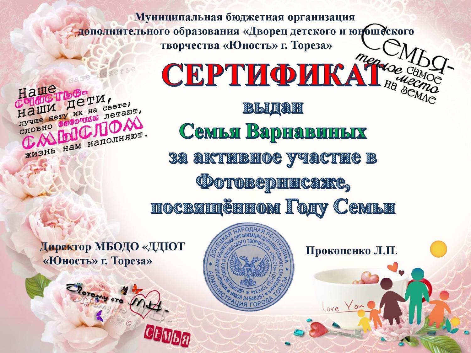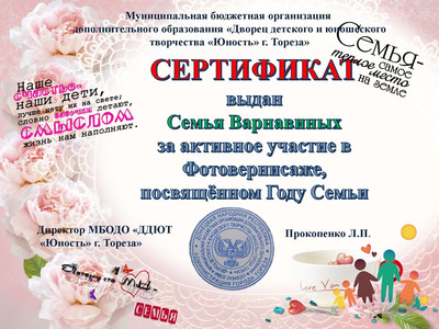 Обучающиеся и родители МБОДО «ДДЮТ «Юность» г. Тореза» приняли участие в фотовернисаже, посвященном Году семьи в Российской Федерации.