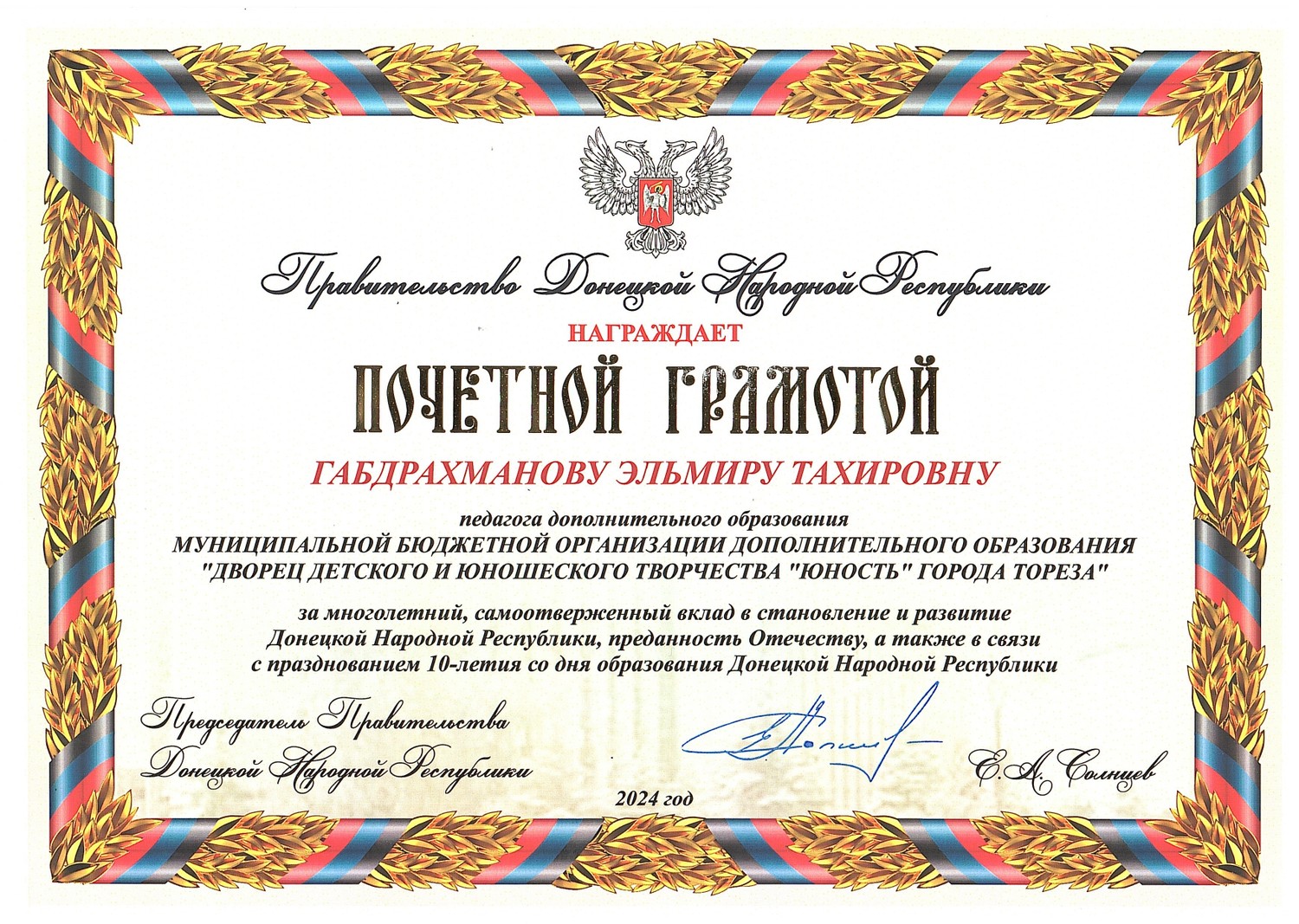 Главная » 2024 Август 28 » Грамота Правительства Донецкой Народной Республики