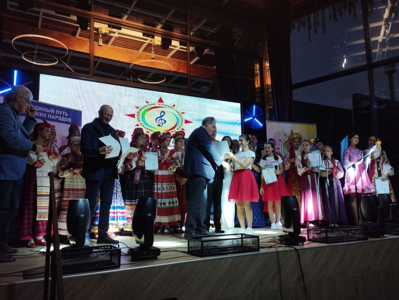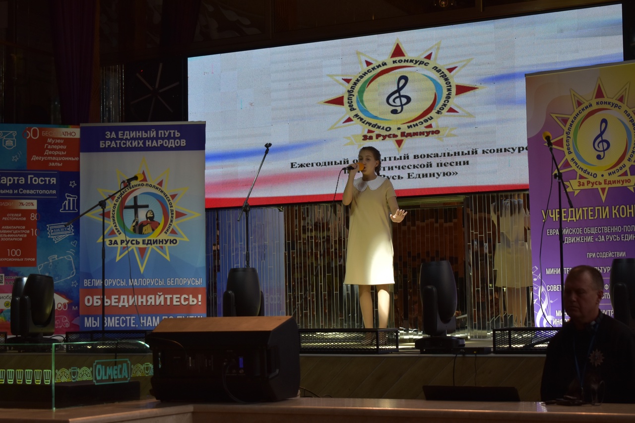 28 октября на сцене музыкального училища им. П.И. Чайковского в Симферополе состоялся финальный тур открытого республиканского конкурса патриотической песни «За Русь Единую». Учредитель конкурса - Евразийское общественно-политическое движение «За Русь Единую» при поддержке Министерства культуры Республики Крым, Центра народного творчества Республики Крым, Министерства внутренней политики, информации и связи Республики Крым и Совета по вопросам физической культуры и спорта Республики Крым. Финал конкурса вел известный крымский радиоведущий Борис Левин. Концерт открыли приветственные слова Председателя Высшего Совета Евразийского общественно-политического движения «За Русь Единую» Алексея Ивановича Ременюка, заместителя министра культуры, Андрея Терещенко и Николая Антюфриева. Они отметили общественную значимость и актуальность конкурса, особенную важность патриотизма сегодня, и выразили уверенность, что в последующие года проект "За Русь Единую" будет лишь масштабнее. В конкурсе приняли участие солистки народного ансамбля эстрадной песни «Тоника» (педагог Гужель В.А.) Селионова Алина и Зайцева Маргарита. Алина исполнила песню «Девочка из фильма», а Маргарита – песню «Милосердие». Первый, заочный тур, успешно преодолели 57 конкурсантов из Крыма, ДНР, Московской, Ивановской и Запорожской областей. Во второй тур открытого республиканского вокального конкурса патриотической песни "За Русь Единую" прошли пятеро участников из ДНР, двое из них смогли выступить на концерте 17 октября. Второй тур прошел 17 октября на сцене клуба "Рыбица" в Симферополе. Когда каждый из конкурсантов показал своё мастерство, юные вокалистки подарили зрителям песню «Молитва за Донбасс». Она шла вне конкурсной программы, но глубоко задела чувства всех присутствующих. Наши девочки достойно прошли два тура, но в финал вышла одна Маргарита. В третьем туре за победу боролись 23 участника в четырех номинациях: - Сольное исполнение; - Дуэты; - Группы; - Авторская песня. По итогам конкурса в своей возрастной категории Маргарита стала лауреатом 3-ей степени! Свой вокальный талант показали музыканты из разных уголков Республики Крым, города Севастополя, Донецкой Народной Республики и Запорожской области. Каждый конкурсант подарил присутствующим яркое выступление и доказал высокое исполнительское мастерство. Поздравляем Маргариту и руководителя с отличными результатами! | |