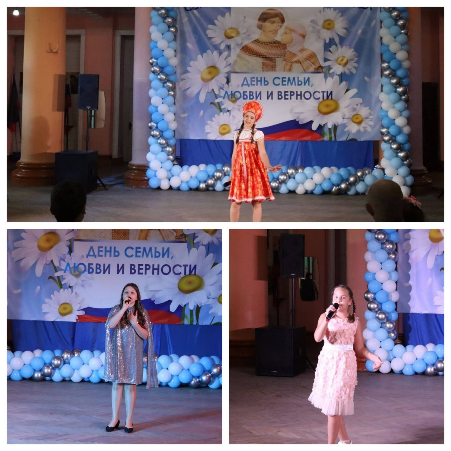 8 июля 2025 года, на базе МБУ «ДК им. В. Маяковского г. о. Торез» прошла праздничная программа «Любовь и верность – два крыла семьи», приуроченная ко Дню семьи, любви и верности, в которой приняли участие солисты народного ансамбля эстрадной песни «Тоника» (педагог Гужель В.А.) – Ярошенко Дарья, Тюпа Анна и Крюк Татьяна.