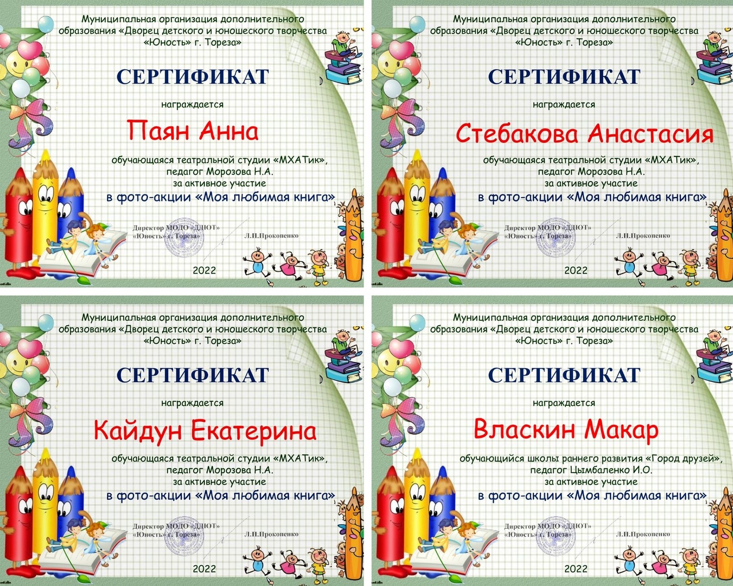 В МОДО «ДДЮТ «Юность» с 23 по 31 марта среди обучающихся была проведена фото-акция «Моя любимая книга», посвящённая Международному дню детской книги. Все участники фото-акции получили электронные сертификаты. Особенно активными были обучающиеся театральной студии «МХАТик», педагог Морозова Н.А. Почему мы любим читать? Книги — самая доступная и самая огромная дверь в другие миры. Читая, можно узнать, понять, почувствовать, посмотреть, ощутить, вспомнить, принять… Можно найти всё, чего хочешь, и даже то, чего ты не искал, потому что не знал, что оно существует. Читая, заполняешь мозг нужной информацией, а не «мусором» из соцсетей. Когда читаешь, ты словно общаешься с очень-очень интересным собеседником, при этом можешь многократно возвращаться к понравившимся моментам, ведь они всегда с тобой. Герои любимых книг часто помогают советом, становятся друзьями и идут с тобой через всю твою жизнь.