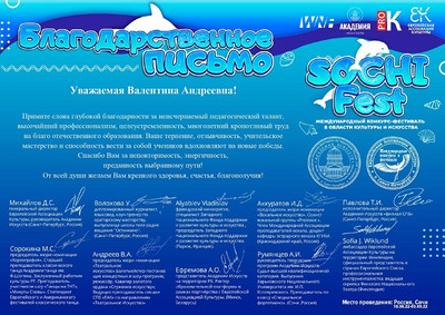 17:07 Международный конкурс-фестиваль в области искусства и культуры «Sochi Fest-2022» | |