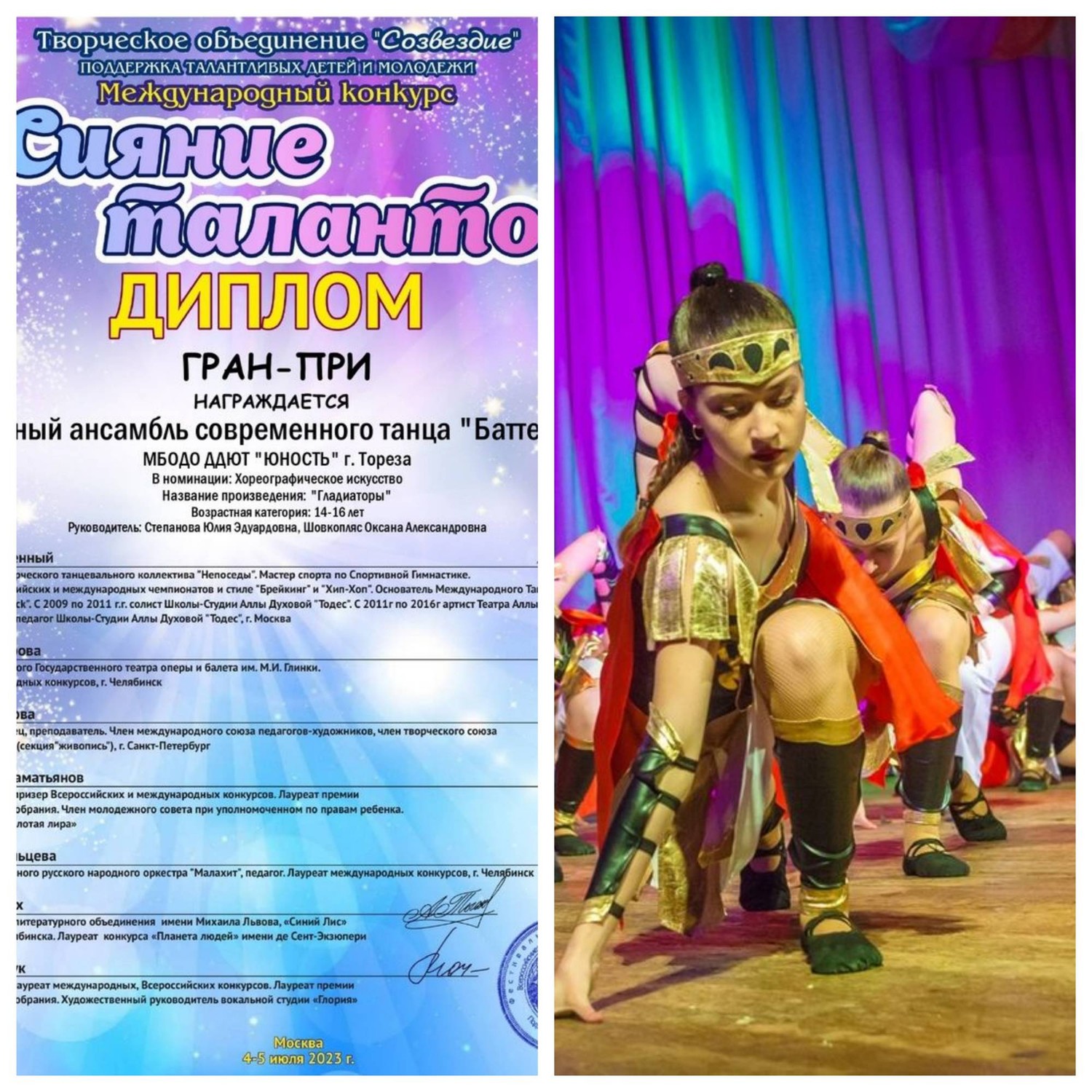 С 4 по 5 июля 2023 г. народный ансамбль современного танца "Баттерфляй" МБОДО «ДДЮТ «Юность» принял участие в Международном онлайн-конкурсе «Сияние талантов», организованном Творческим объединением «Созвездие» (г. Москва).