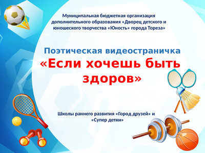 Воспитанники школ раннего развития «Город друзей» и «Супер детки» МБОДО» ДДЮТ «Юность» подготовили поэтическую видеостраничку «Если хочешь быть здоров».