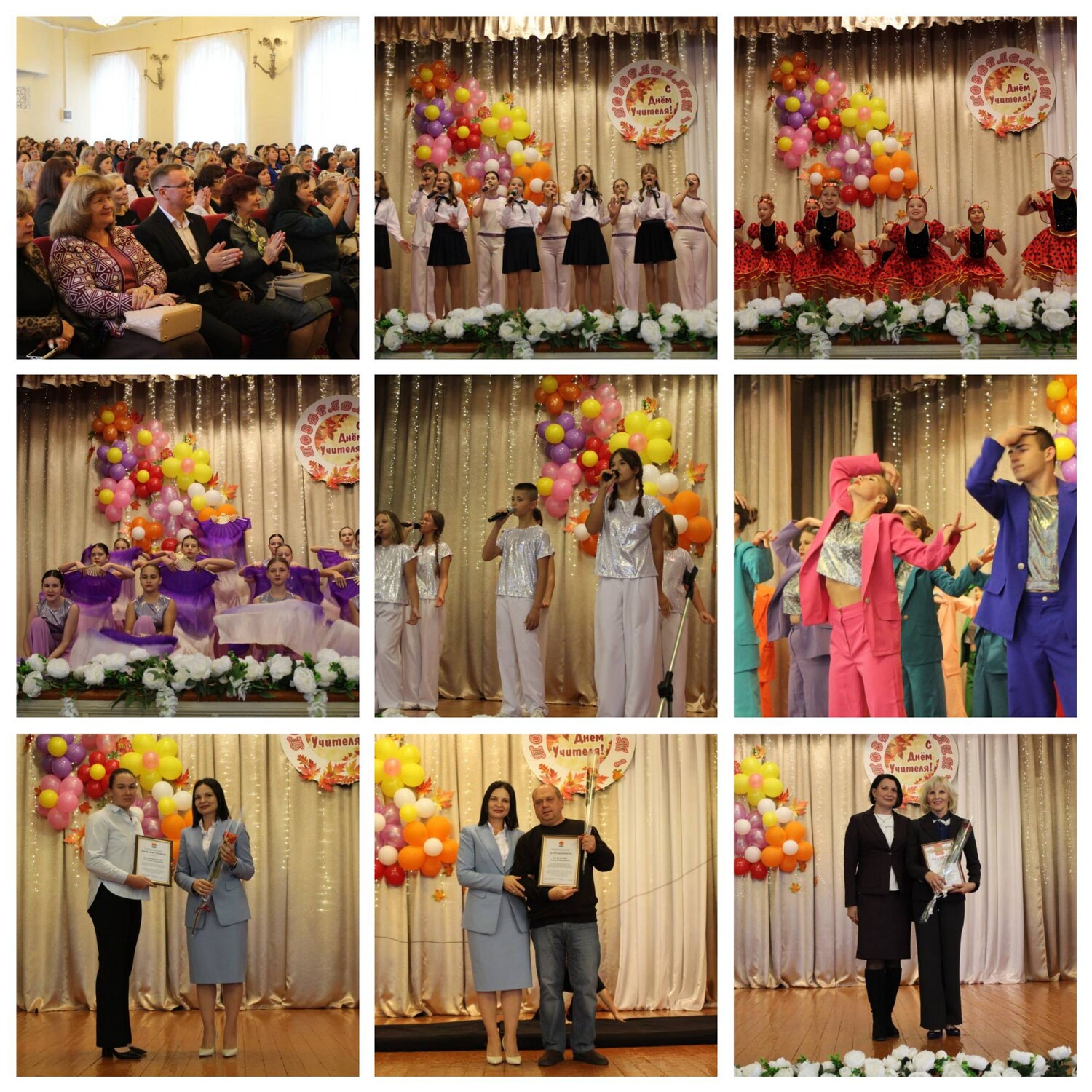 Сегодня, 1 октября 2025 года, во Дворце творчества собрались гости на праздничный концерт «Формула счастья учителей». Праздничная атмосфера, яркие краски, цветы и улыбки на лицах царили повсюду. Поздравить педагогов пришли заместитель главы администрации городского округа Торез Дедух Ольга Петровна, председатель Торезского городского совета ДНР Казмерчук Александр Леонидович, начальник отдела образования администрации городского округа Торез Ахметзянова Алсу Фарсиевна, председатель Территориальной организации Общероссийского Профсоюза образования городского округа Торез в ДНР Чепур Елена Викторовна. Яркие номера творческих коллективов подарили незабываемые эмоции и хорошее настроение. Перед зрителями своё искусство представили: народный цирковой коллектив «Салют» (педагоги Анна и Александр Гавриленко), театральная студия «МХАТик» (педагог Морозова Н.А.), народный ансамбль эстрадной песни «Тоника» (педагог Гужель В.А.), народный ансамбль современного танца «Баттерфляй» (педагог Степанова Ю.Э.), вокальный ансамбль «Улыбка» (педагог Трофимова Л.А.). Аплодисменты, слезы радости и грусти, море цветов и яркого настроения – все это стало важнейшим атрибутом праздника. Мы поздравляем всех учителей с профессиональным праздником! | |