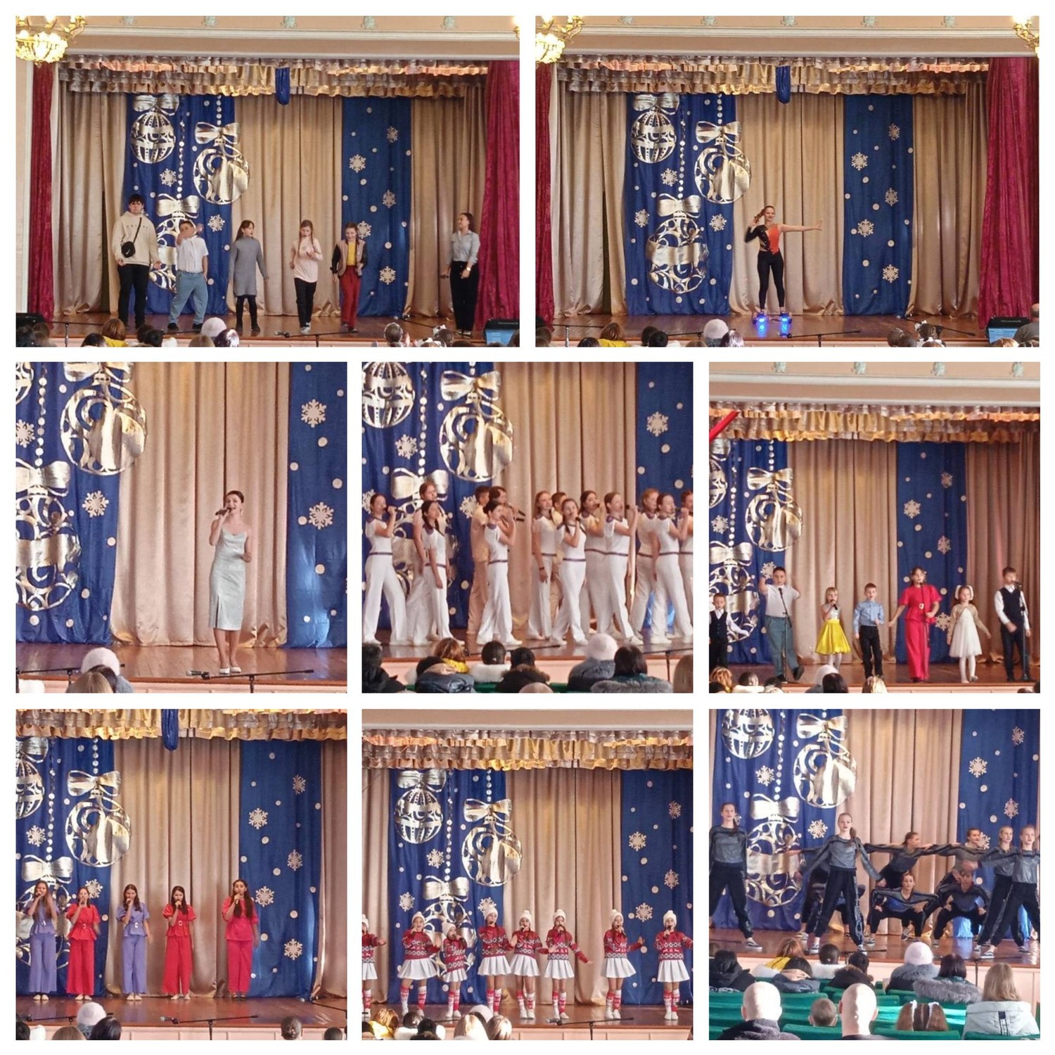 А поскольку именно в этот праздник все очень любят получать подарки, поэтому сегодняшний концерт стал таким своеобразным музыкальным подарком. Вокальные и танцевальные номера переплетались с цирковыми, для зрителей были подготовлены сюрпризы, развлечения и сладкие подарки. Концерт прошёл на одном дыхании и действительно, подарил всем окружающим заряд бодрости и хорошего настроения! Для зрителей пели: Народный ансамбль эстрадной песни «Тоника» (педагог Гужель В.А.) – «Шапка», «Небо за нас», «Новогодняя» (Селионова Алина), «Эх, зима!» (Зайцева Маргарита); Вокальный ансамбль «Улыбка» (педагог Трофимова Л.А.) – «Замела метелица», «148 принцев», «Ромео и Джульетта». Для зрителей танцевали: Народный ансамбль современного танца «Баттерфляй» (педагог Степанова Ю.Э.) – «Золотые цепи», «Гладиаторы», «Шоумен», «Бадабум-чача», «Заметай», «Дроля мой». Для зрителей выступали: Народный цирковой коллектив «Салют» (педагоги Анна и Александр Гавриленко) – «Гимнаст на полотнах» (Панченко Иван), «Гимнастка в коконе» (Филина София), «Гироскутер» (Гавриленко Екатерина).