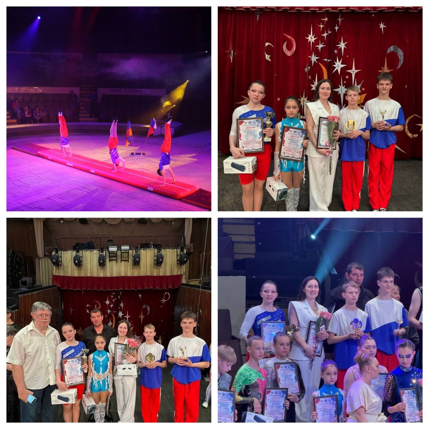 Гавриленко Дарья, Герасимов Тимофей и Чернышев Кирилл - 2 место и Специальный приз режиссера Донецкого цирка «Космос» Кобец Людмилы Геннадьевны! Благодарим всех, кто принял участие в этом празднике силы, красоты, грации и мастерства! Ребята, вы молодцы! Мы вами гордимся! Спасибо за организацию и теплый прием Донецкий цирк «Космос» и Республиканский Дом Народного Творчества и Кино! | |