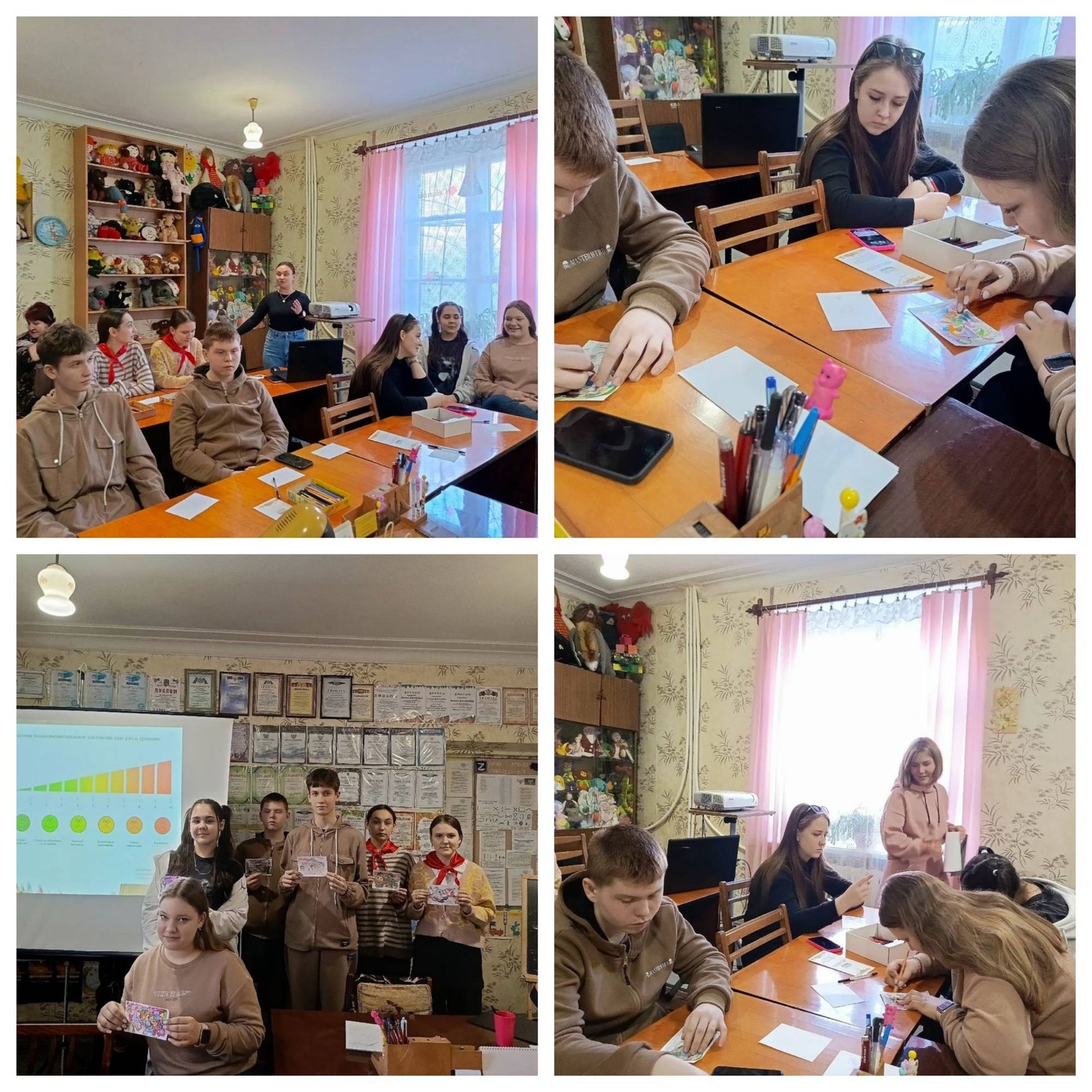 28 февраля в Центре «Движения первых» на базе МБОДО «ДДЮТ «Юность» прошел семинар-практикум «Энергетическое фрактальное рисование – как метод арт-терапии для гармонизации психоэмоционального состояния в сложной жизненной ситуации» в рамках проекта «Мы творим прекрасное». Со вступительной частью и историей возникновения методики фрактального рисунка выступила руководитель Центра «Движение первых», педагог-организатор Дворца Грунь О.В.. Фрактальный рисунок (ФРИС) представляет собой один из вариантов арт-терапии, во время которой используется мелкая моторика и механизмы подсознания. С помощью такой терапии удается значительно улучшить самочувствие и повлиять на психофизиологическое состояние. С практической частью участников семинара познакомила педагог-психолог Дворца Некипелова И.А.. С помощью расслабляющей музыки ребятам удалось погрузиться в процесс рисования фракталов своей ауры. Анализ рисунков позволил глубже познать себя, определить свои сильные и слабые стороны. Активисты «Движения первых» научились диагностировать свои психоэмоциональные состояния и приводить их в нормализацию.