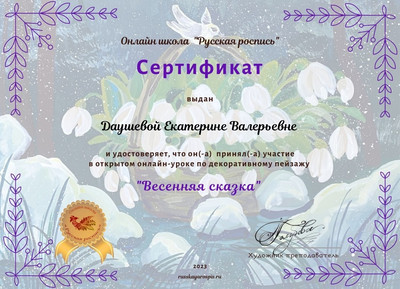 Педагоги МБОДО «ДДЮТ «Юность» Москалева Е.В. и Даушева Е.В.приняли участие в открытом онлайн-уроке по декоративному пейзажу «Весенняя сказка». | |