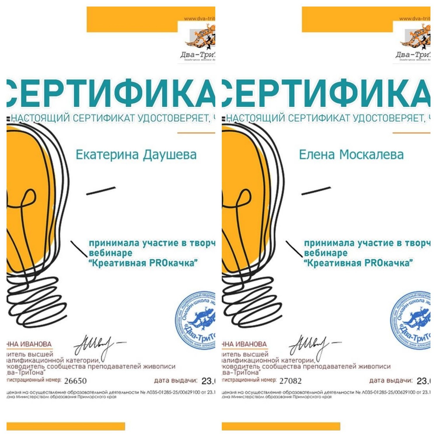 Педагоги Дворца творчества Москалева Е.В. и Даушева Е.В. приняли участие в творческом вебинаре «Креативная PROкачка» на платформе «Два-ТриТона». | |
