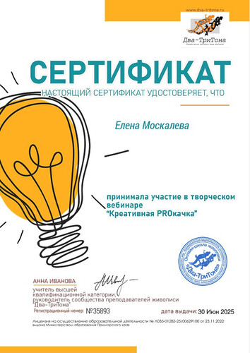 Педагоги Дворца творчества Москалева Е.В. и Даушева Е.В. приняли участие в вебинаре «Креативная PROкачка» (платформа Два-ТриТона»). | |
