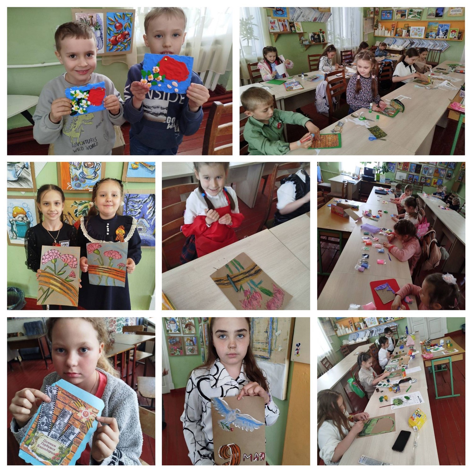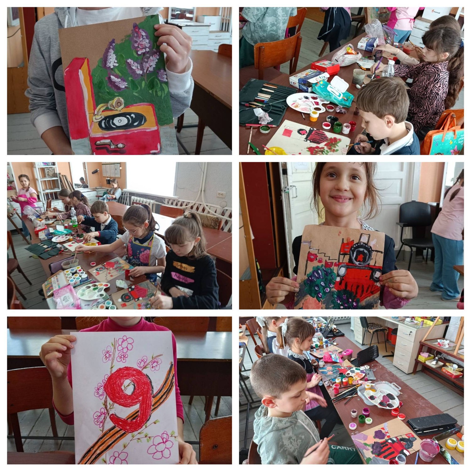 В канун праздника Великой Победы в ТО «Живопись и графика» (педагог Даушева Е.В.) и «Школа красоты» (педагог Москалева Е.В.) прошли тематические арт-мастерские. Цель: Закрепление знаний детей о праздновании Дня Победы через художественно-эстетическую деятельность. Задачи: 1. Воспитывать патриотические чувства, любовь к Родине, уважение к героям Великой Отечественной войны, чувство гордости за свой народ. 2. Развивать воображение, эстетическое восприятие, умение создавать композицию, самостоятельно задумывать содержание работы, соответствующее тематике занятия. 3. Закреплять знания о всенародном празднике «Дне Победы», традициях празднования 9 мая. 4. Совершенствовать приобретённые навыки и умения в изобразительной деятельности, умение работать с различными материалами.