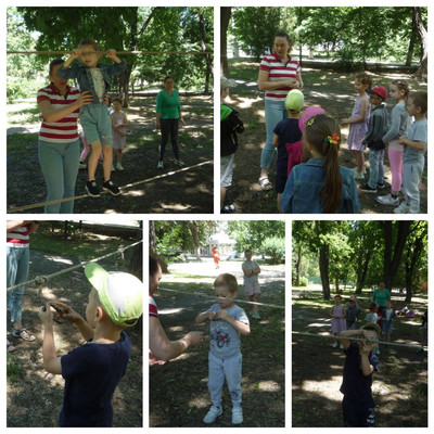21 июня руководитель ТО «Пешеходный туризм» Габдрахманова Э.Т. вместе с педагогами Короткой А.В. и Манушенко Е.В. подготовили для ребят со школы раннего развития туристическое развлечение «Тропа туриста». Одной из важнейших теоретических и практических задач оздоровительной работы является внедрение инновационных подходов к сохранению и укреплению здоровья дошкольников. Одной из таких форм являются мероприятия с элементами туризма. Туризм – прекрасное средство, которое естественным путем удовлетворяет потребности ребят. Игры, проведенные на свежем воздухе, закаливают организм, повышают иммунитет ребенка, эмоциональный настрой. В туризме интегрируются все основные стороны воспитания: нравственная, познавательная, трудовая, физическая, эстетическая. Малыши не только познакомились с туристским снаряжением, но ещё с удовольствием поиграли: переправились через «речку» с помощью каната, прошли переправу через глубокий «каньон» и посоревновались командами («Божья коровка» и «Турбо-гроза») в скорости и ловкости. Ребятишкам очень понравилось туристическое развлечение. | |