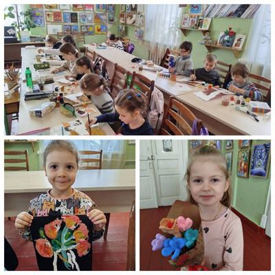 В ТО «Живопись и графика» (педагог Даушева Е.В.) и «Школа красоты» (педагог Москалева Е.В.) прошли творческие арт-мастерские, приуроченные к 8 Марта. Обучающиеся рисовали яркие цветы, делали открытки, лепили красочные букеты, чтобы потом поздравить самых близких и любимых. | |