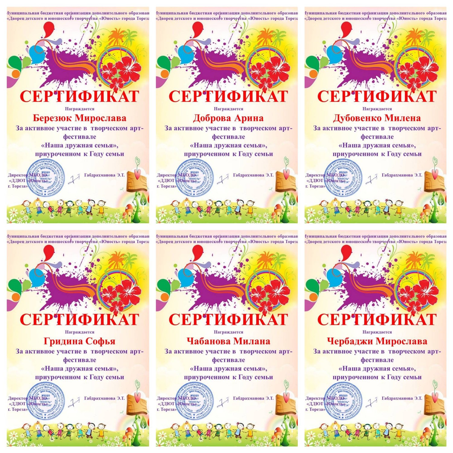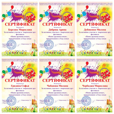 Обучающиеся МБОДО «ДДЮТ «Юность» во время осенних каникул приняли участие в творческом арт-фестивале «Наша дружная семья», приуроченном к Году Семьи. Все юные художники награждены электронными сертификатами за активное участие в фестивале. Поздравляем! Молодцы! | |