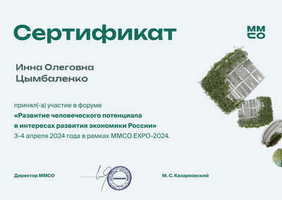 Педагог МБОДО «ДДЮТ «Юность» Цымбаленко И.О. приняла участие в форуме «Развитие человеческого потенциала в интересах развития экономики России», который состоялся 3-4 апреля в г. Москве в рамках ММСО.EXPO-2024. | |