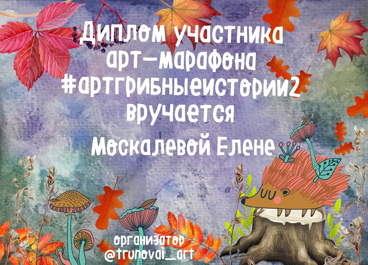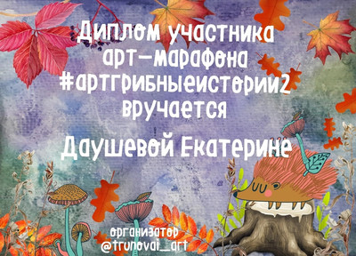 С 17 по 23 сентября педагоги Москалева Е.В. и Даушева Е.В. приняли участие в осеннем бесплатном арт-марафоне «Грибные истории». Для участия в марафоне надо было нарисовать две открытки по образцу и выставить на свою страничку ВКонтакте. За участие в марафоне педагоги получили сертификаты. Поздравляем наших творческих коллег!