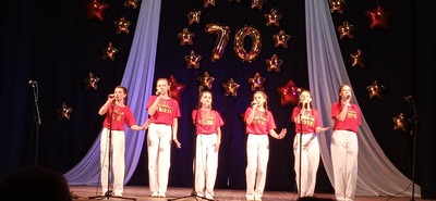 22 февраля МУ «ДК им. В. Маяковского г. Тореза отметил своё 70-летие торжественным мероприятием «70 лет. Юбилей в кругу друзей». С поздравлениями в честь юбилея выступили – театральная студия «МХАТик» (педагог Морозова Н.А.) и народный ансамбль эстрадной песни «Тоника» (педагог Гужель В.А.). | |