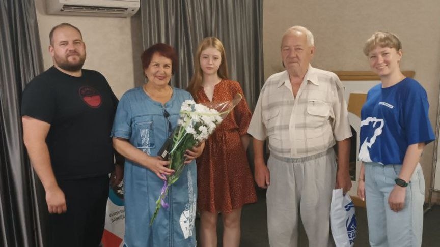Валентина Андреевна и Александр Петрович Гужель вместе уже 50 лет. Воспитали двух замечательных дочек и четырех внучек. Валентина Андреевна, педагог, руководитель вокального ансамбля «Тоника», работает во Дворце детского и юношеского творчества «Юность» уже 42 года. Александр Петрович, пенсионер, увлекается высадкой цветов. С улыбкой отметила Валентина Андреевна: «Он мне их не дарит, а высаживает. Дом полон цветов благодаря Саше». Вместе они украшают свой уютный дом и небольшое приусадебное хозяйство. Супруги считают, что главное в семье – это любовь, уважение, терпение и взаимопонимание. Поздравил супругов кандидат в депутаты от Партии «Единая Россия» Пуцыкович Богдан, от всей души пожелал супругам отметить бриллиантовую и благодатную свадьбы! Мероприятие прошло в рамках реализации федерального партийного проекта «Крепкая семья» в ДНР. | |