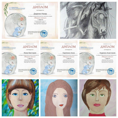 2-е место – Коршенко София. Народный художественный коллектив «Живопись и графика» (педагог Даушева Е.В.): 1-е место – Клыпа София, Боярова Анастасия; 2-е место – Самущик София; 3-е место – Бутвина Алина. Руководители награждены благодарственным письмом. Поздравляем руководителей и участников! | |
