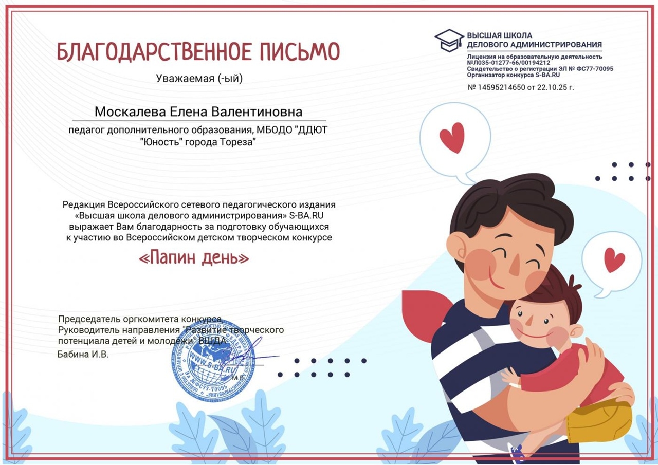 Главная » 2025 Октябрь 24 » Всероссийский детский творческий конкурс «Папин день»