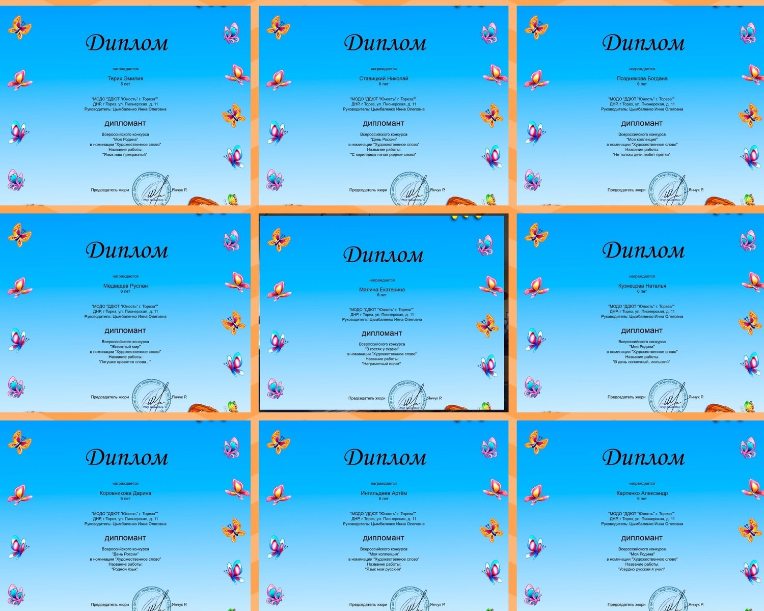 В марте обучающиеся школы раннего развития «Город друзей» (педагог Цымбаленко И.О.) приняли участие во Всероссийском конкурсе «Мир талантов», г. Москва. Дипломанты конкурса: