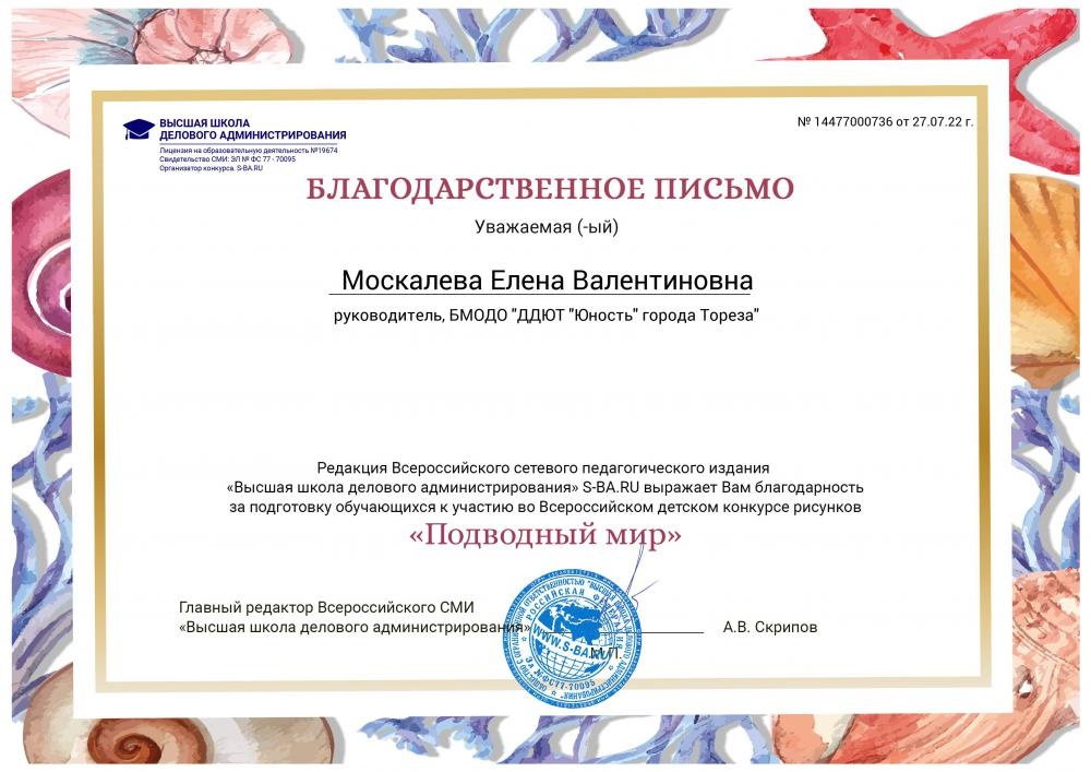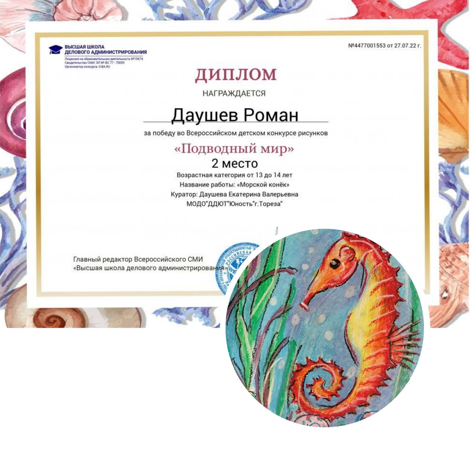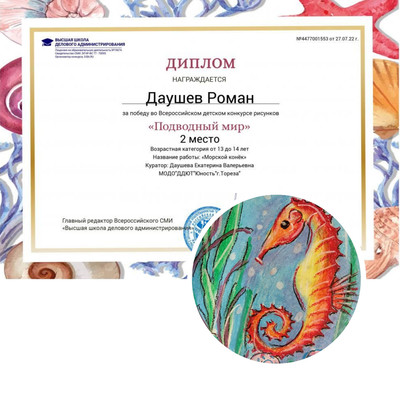 Ежегодно 23 июля отмечается Всемирный день китов и дельфинов. Этот праздник был учрежден в 1986 году, когда начал действовать запрет на китовый промысел, введённый 23 июля 1982 года. Особое значение этот день имеет для России, поскольку в морях Российской Федерации обитает несколько десятков видов китов, дельфинов и тюленей. Многие из них находятся под угрозой исчезновения и занесены в Красную книгу РФ и Международного союза охраны природы. Обучающиеся МБОДО «ДДЮТ «Юность» с 22 июля 2022 года по 27 июля приняли участие во Всероссийском детском конкурсе рисунков «Подводный мир». Организатор конкурса Высшая школа делового администрирования. Цель Конкурса — развитие творческого мышления, фантазии и воображения; расширение кругозора детей. Основные цели Конкурса: • активизировать познавательную деятельность детей; • создания условий для развития творческого потенциала детей; • познакомить участников с обитателями подводного мира. Итоги конкурса: Народный художественный коллектив «Живопись и графика» (педагог Даушева Е.В.): 1 место – Иващенко Екатерина, 2 место – Даушев Роман; Образцовый художественный коллектив «Школа красоты» (педагог Москалева Е.В.): 1-е места – Бояринцева Анастасия, Иким Виктория, Тимченко Маргарита, Кривенко Мария, 2-е места – Тимченко Екатерина и Савченко Дарина. Руководители награждены благодарственными письмами. Поздравляем! | |