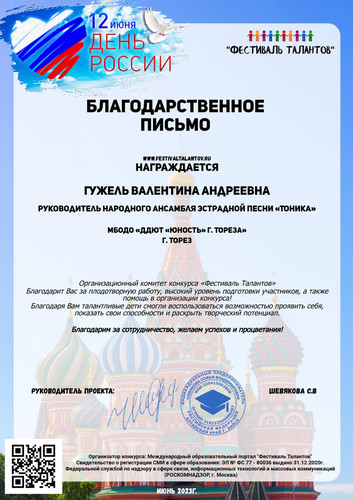 Народный ансамбль эстрадной песни «Тоника» (педагог Гужель В.А.) МБОДО «ДДЮТ «Юность» принял участие во Всероссийском патриотическом конкурсе ко Дню России «Россия-великая страна!» на платформе «Фестиваль талантов». Цели и задачи: