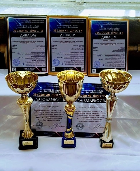 15 октября в городе Ростов-на-Дону проходил XIII Международный конкурс искусства и творчества "ЗВЕЗДНАЯ ФИЕСТА", в котором принял участие народный ансамбль современного танца "Баттерфляй" Дворца детского и юношеского творчества "Юность" (педагог Степанова Ю.Э.). Замечательные результаты показала 2-я старшая группа ансамбля и стала трижды лауреатами I - степени! Была представлена танцевальная программа в различных хореографических направлениях. Жюри высоко оценило творчество наших танцоров! "Ромео и Джульетта" (эстрадная хореография)- 1 место "Шоумен" (Street dance)- 1 место "Афро-диор" (современная хореография)- 1 место Мы поздравляем наших победителей и желаем им блестящих выступлений, неугасаемого желания совершенствоваться, стремления к победам и ярких эмоций! | |