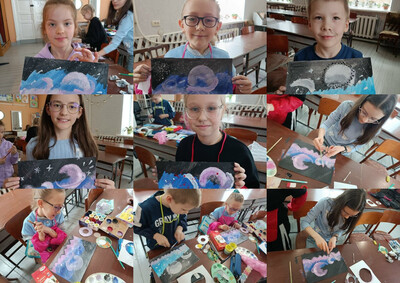 3 апреля 2026 года обучающиеся образцового художественного коллектива «Школа красоты» (педагог Москалева Е.В.) приняли участие в увлекательной творческой мастерской «Космические фантазии», где смогли проявить фантазию и раскрыть новые грани творчества. Ребята погрузились в загадочный мир космоса: изучали планеты Солнечной системы, звёзды, кометы и астероиды. Педагог подготовила интересный материал, который помог детям лучше представить бескрайние просторы Вселенной и почувствовать себя настоящими исследователями космического пространства. Но самое интересное ждало впереди — создание собственных космических шедевров! Используя необычную технику рисования, дети научились технике набрызга и работе с поролоновой губкой. Эти приёмы помогли ребятам создать яркие, необычные и выразительные работы. Каждый рисунок получился уникальным и неповторимым, отражая индивидуальные представления детей о красоте и тайнах вселенной. Дети были увлечены процессом, проявляли креативность и смекалку, экспериментировали с красками и материалами. Работа в такой нестандартной технике позволила развить мелкую моторику рук, пространственное мышление и чувство композиции. Благодаря таким творческим занятиям наши воспитанники становятся более уверенными в себе, учатся выражать свои мысли и чувства через искусство, расширяют кругозор и развивают воображение. Спасибо нашему замечательному педагогу, который умеет превращать обычные занятия в настоящие приключения и открытия!