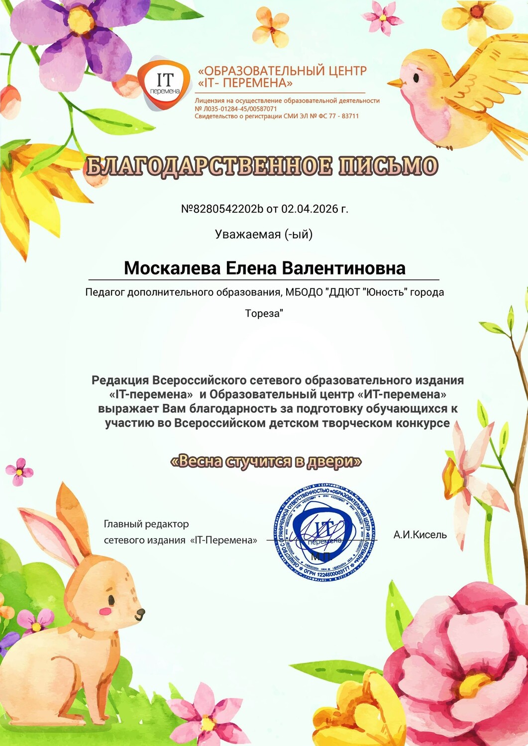Главная » 2026 Апрель 6 » Всероссийский детский творческий конкурс «Весна стучится в двери»